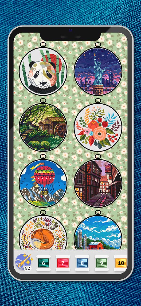 Relaxing embroidery and coloring game focused on creativity and long-term engagement.